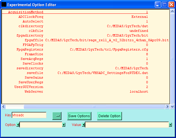 Any changes to the MWD parameters will be lost by a SETUP operation so remember to SAVE them using the "Save Settings" option in the "LyrTech VHS-ADC Client" window.