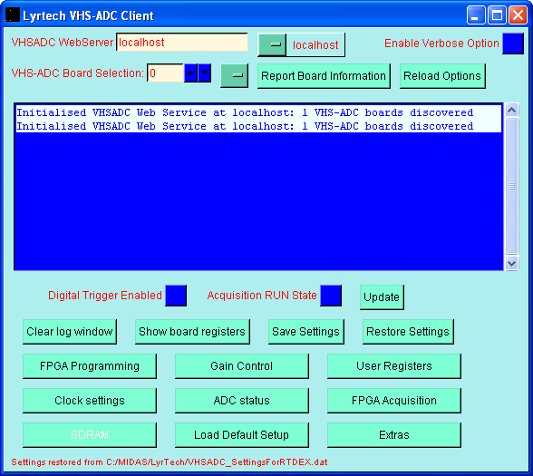 The primary LyrTech VHS-ADC control window will look something like this (to see full size click on the image; use the browser "back" button to return here).
